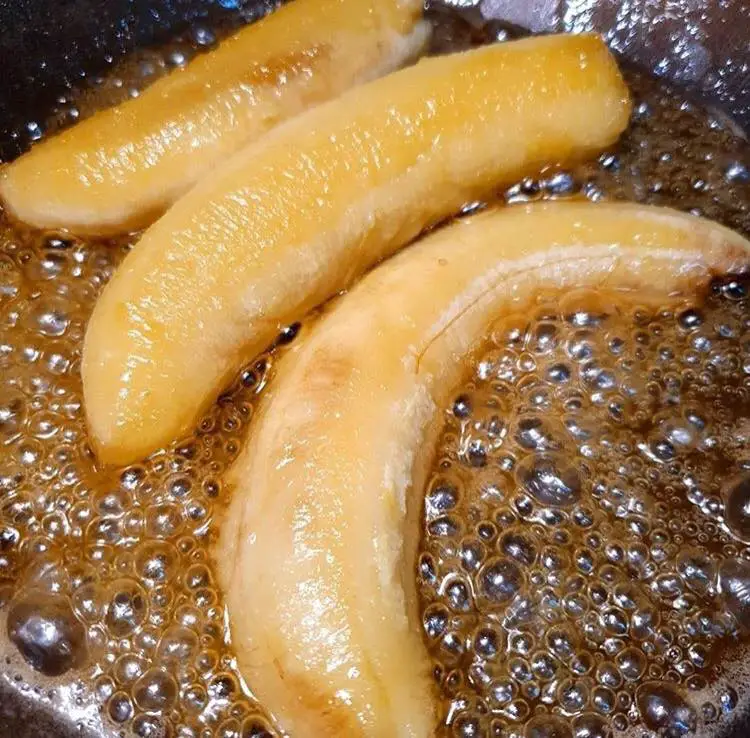Juntar uma 1 colher (sobremesa) de manteiga e colocar as bananas. E aí é só deixar até o caldo engrossar