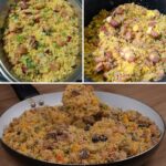 Aquecer uma frigideira, regar com azeite e dourar a cebola. Reservar.