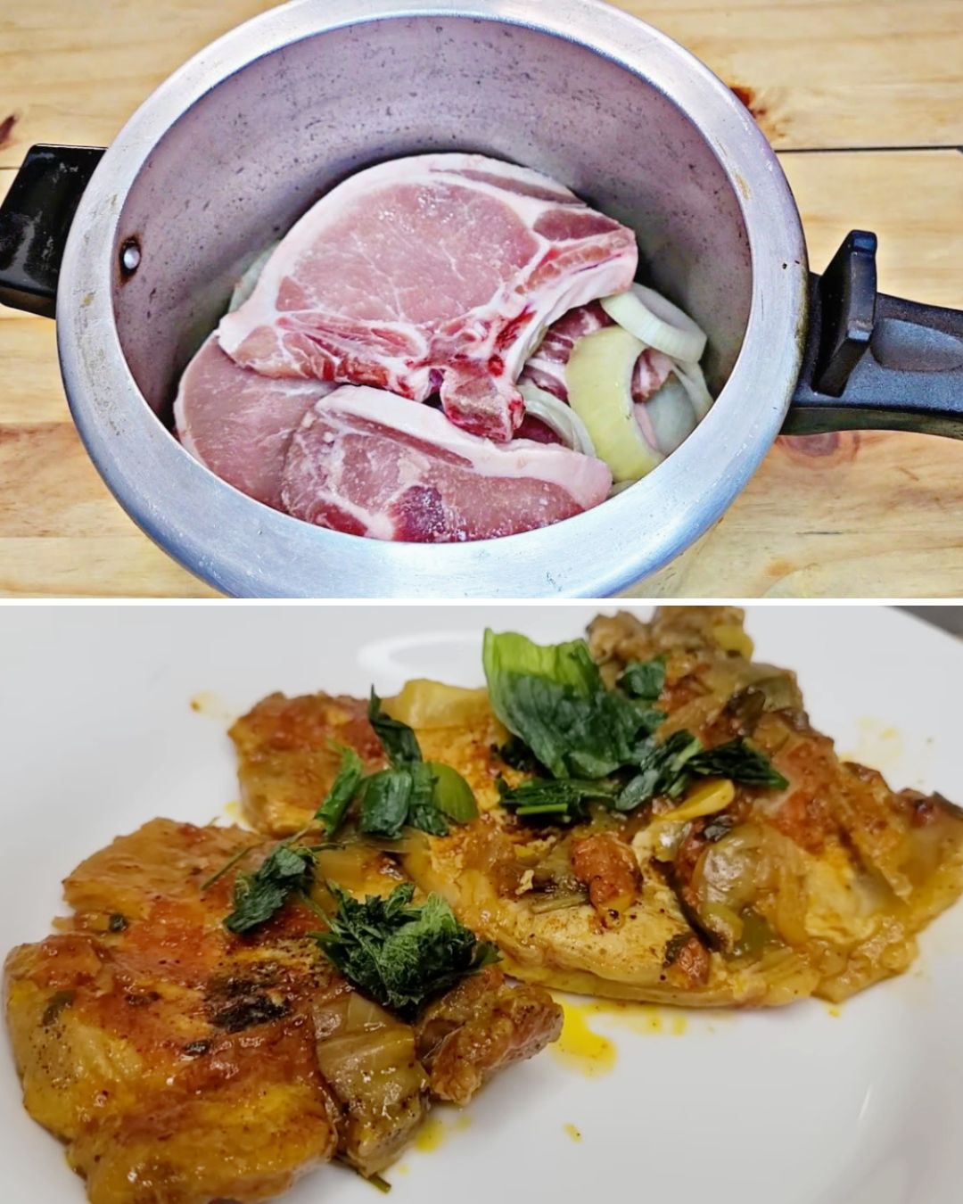 E a bisteca de porco na pressão mais deliciosa do mundo ficou pronta!