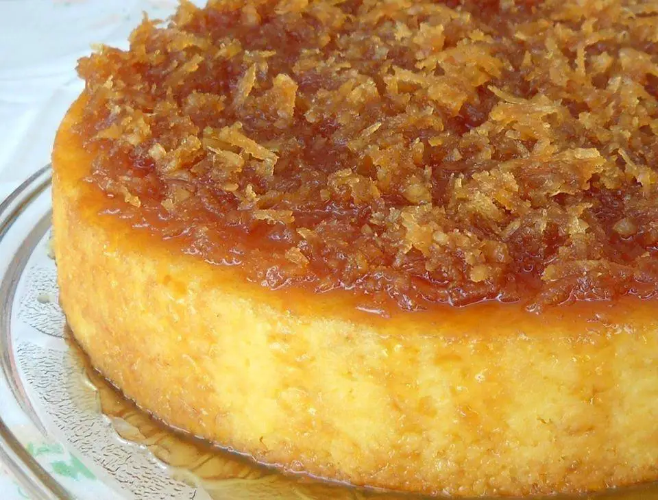 Depois de batido coloque a massa em uma forma untada com manteiga e trigo e leve o bolo para assar por 30 minutos faça o teste do palito de dente se após finca-lo ele sair limpinho é porque o bolo está assado por completo. Se preferir cubra o bolo com calda de caramelo e polvilhe coco ralado.