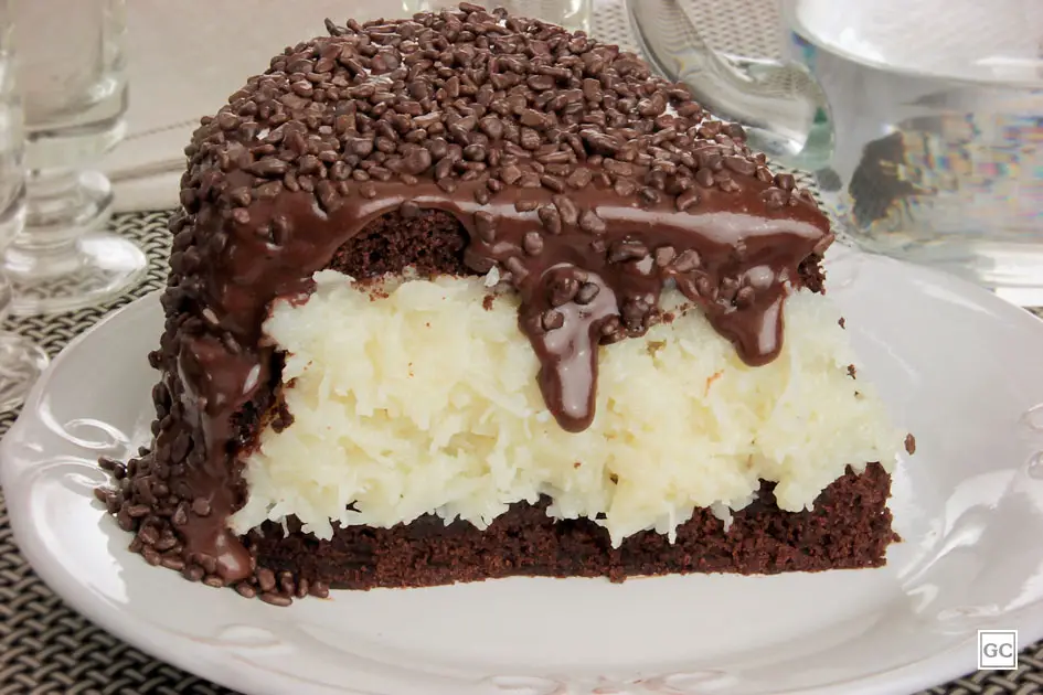 Para a massa misture a farinha de trigo, o cacau em pó, o açúcar e por último o fermento. Deixe reservado. Na batedeira bata as claras em neve e junte as gemas sem parar de bater, despeje a mistura de farinha e o leite bata por mais uns 3 minutos ou até que todos os ingredientes estejam incorporados. Despeje a metade da massa para uma fôrma média untada. Coloque colheradas do recheio por cima e cubra com a massa restante. Asse por 40 minutos no forno preaquecido, deixe esfriar e desenforme cubra o bolo com a cobertura e enfeite!