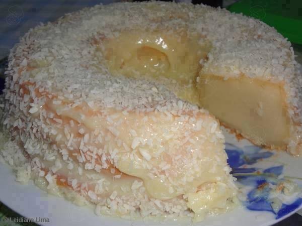 Deixe esfriar um pouco de desenforme. A consistência não é de um bolo comum, este bolo fica mais mole, tipo uma queijada.