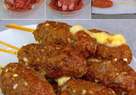 Espetinho de carne moída recheada com queijo