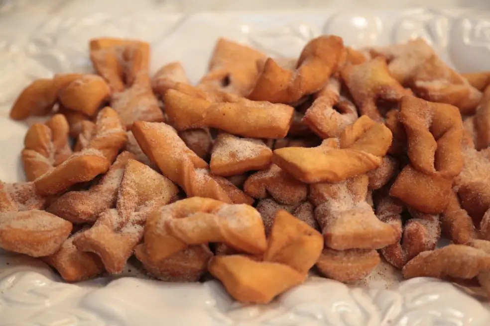 Comece misturando todos os ingredientes até formar uma massa que não grude nas mãos. Reserve e deixe a massa descansar por uns 15 minutos depois, abra com um rolo corte em tiras no tamanho que você preferir. Para fazer o formato corte no meio e passe uma ponta por dentro frite em óleo quente e depois, de frio passe no açúcar e na canela.