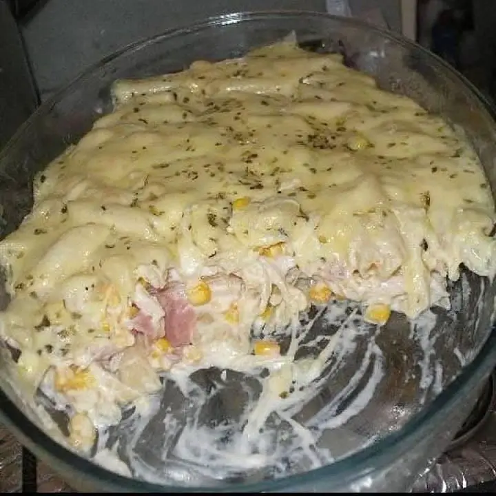 Depois coloque uma camada de queijo e todo o presunto. Coloque o resto do macarrão, outra camada do queijo mussarela e por cima um pouco de queijo ralado.  Leve ao forno até gratinar…