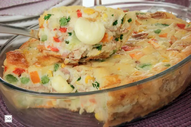 Torta de atum com legumes: Colorida, deliciosa e nutritiva está torta é uma ótima opção para servir para as crianças principalmente para as que possuem dificuldade de comer legumes, use seus legumes favoritos. Coloque as crianças para ajuda-lo a preparar será uma ótima atividade além, de você pode passar um tempinho com eles.