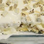 Coloque todos os ingredientes da massa no liquidificador e bata, se a massa ficar muito líquida acrescente mais um pouco de farinha de trigo. Ligue o forno para pré aquecer, unte uma forma com manteiga e farinha de trigo despeje a metade da massa, depois acrescente a metade do recheio, acrescente o restante da massa e finalize com o restante da massa. Leve ao forno por uns 30 minutinhos ou até dourar.
