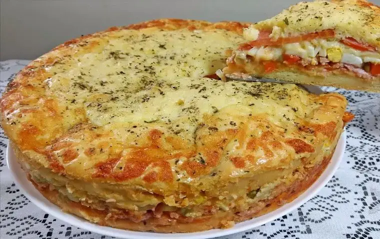A torta portuguesa possuí um sabor idêntico a pizza porém, ela é mais encorpada existe, uma receita tradicional que é esta que iremos ensinar hoje no entanto, devido a versatilidade da massa você pode estar usando no recheio ingredientes que você já tem em sua geladeira. Esta massa combina perfeitamente com presunto, queijo, ovos cozidos, cebola , milho ervilha, calabresa, bacon, legumes enfim, use no recheio ingredientes que você mais gosta e se delicie! A combinação de ingredientes do recheio será como uma explosão de sabores a cada mordida, reúna os amigos e toda a família neste final de semana e sirva está delícia pode confiar será um sucesso.